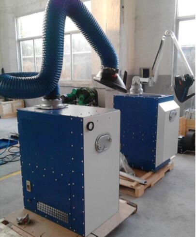 焊煙除塵器通過(guò)風(fēng)機(jī)引力作用,焊煙廢氣經(jīng)萬(wàn)向吸塵罩吸入設(shè)備進(jìn)風(fēng)口,設(shè)備進(jìn)風(fēng)口處設(shè)有阻火器,火花經(jīng)阻火器被阻留,煙塵氣體進(jìn)入沉降室,利用重力與上行氣流,首先將粗粒塵直接降至灰斗,微粒煙塵被濾芯捕集在外表面,潔凈氣體經(jīng)濾芯過(guò)濾凈化后,由濾芯中心流入潔凈室,潔凈空氣又經(jīng)活性碳過(guò)濾器吸附進(jìn)一步凈化后經(jīng)出風(fēng)口達(dá)標(biāo)排出。