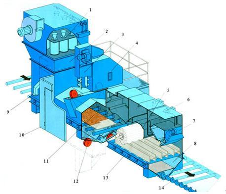 其中通過(guò)式拋丸機(jī)是發(fā)往河北邯鄲,客戶(hù)主要生產(chǎn)污水處理設(shè)備,為提升產(chǎn)品表面處理效果,所以采用拋丸機(jī)進(jìn)行表面清理,拋丸后再進(jìn)行表面涂裝,提高產(chǎn)品表面涂層強(qiáng)度。